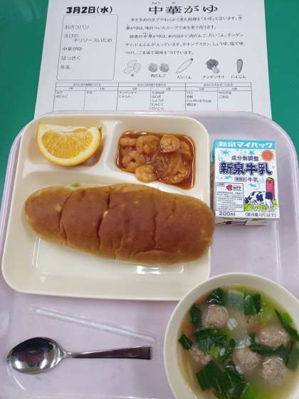 本日の給食メニューは