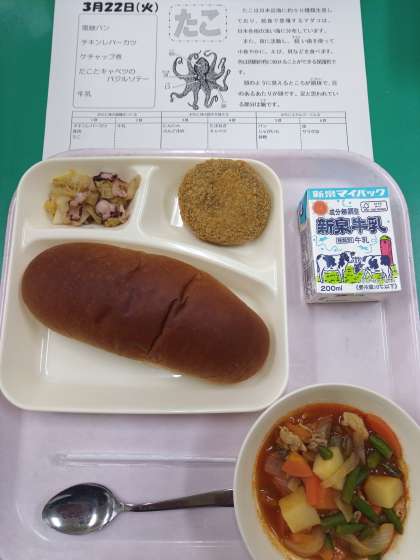 給食で登場するマダコ(たこは日本近海に約50種!)は、日本各地の浅い海に生息しています。