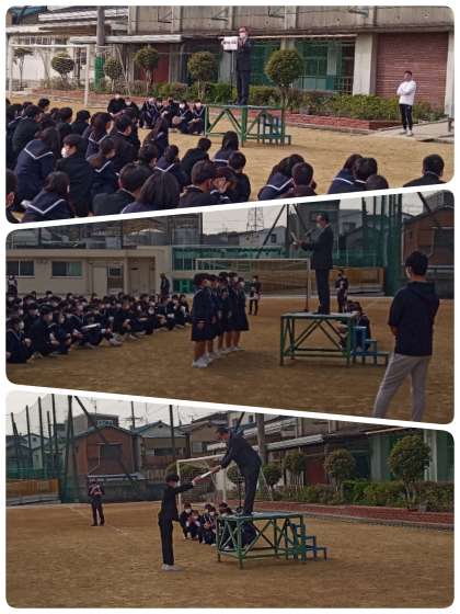 また、ソフトボール部と剣道部が大会で入賞しましたので、校長先生から伝達表彰していただき、賞状が手渡されました。