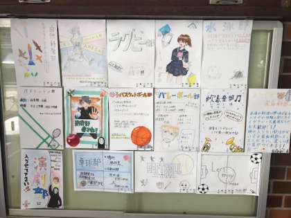 1年生にむけて、各部活が紹介ポスターを掲示しています。