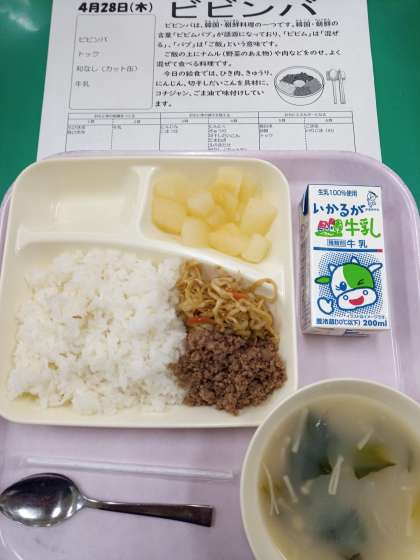 学校給食では、「ビビンバ」表記を採用しているんだそうです。