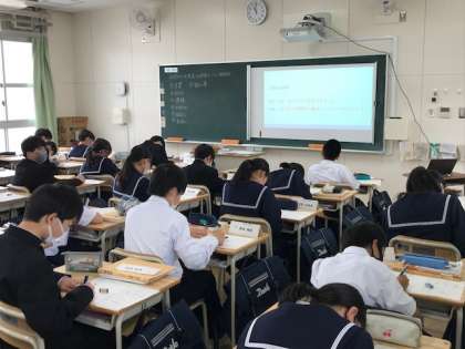 下:1年生「家庭科」の授業では、「幼児の自立と自律」について学習しています。