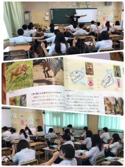1年生は、理科の授業で、「動物の食べ物と体のつくり」について、学習してます。