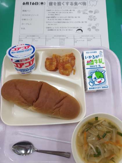 今日から修学旅行で3年生が不在なので、今日と明日は1・2年生だけでの給食となります。
