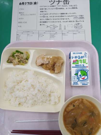 「ツナ(tuna)」とはまぐろを英語にした言葉で、給食では「キハダマグロ」という種類が使われていているそうです。
