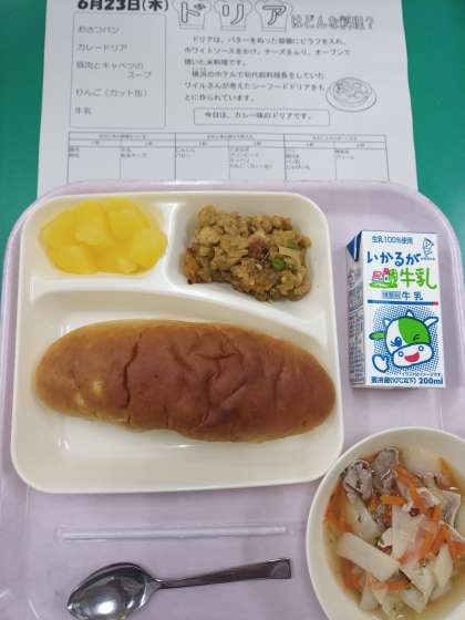「ドリア」は、バターをぬった容器にピラフを入れ、ホワイトソースをかけてチーズをふり、オーブンで焼いた米(こめ)料理です。