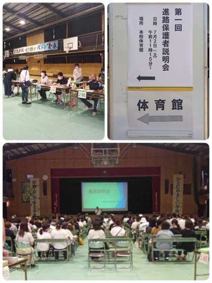 本日11時15分より、本校体育館にて第1回進路保護者説明会を実施いたしました。
