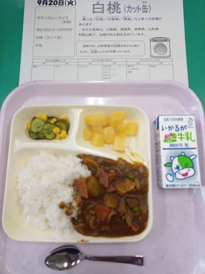 今日のチキンカレーライスは米粉が使用されていますので、小麦アレルギーの方も安心して食べていただけます。