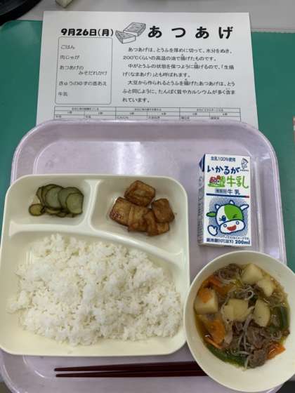 たんぱく質やカルシウムが多く含まれるので、あつあげには体をつくる働きがありますね。