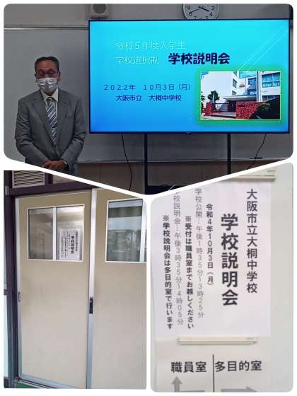 昨日(10月3日)の午後、本校にて学校選択制にかかる学校公開・学校説明会を実施いたしました。