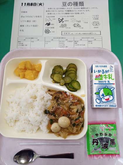今日の「中華丼」には「うずらの卵」が入っていますので、本日は「個別対応献立実施日」となっています。