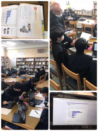 Google Formを利用して、アンケートをとり、その結果から新聞を作成、「防災」について学習してます。