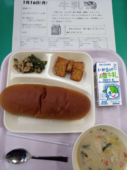 毎日の牛乳だけでなく、今日の献立の「クリーム煮」にも牛乳が使われていますが、成長期である皆さんにとって、牛乳は必要な食材だといえます。