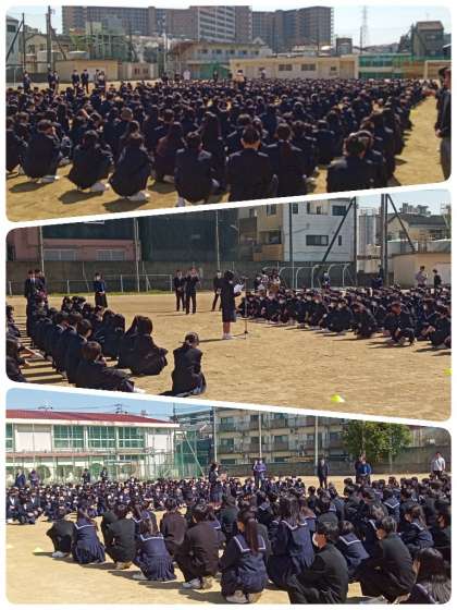 始業式に引き続き、新入生を迎える会が行われ、2・3年生によって新入生をお迎えすることができました。