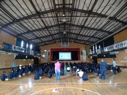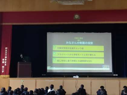 6時間目に体育館で、1年生の着こなしセミナーを行いました。
