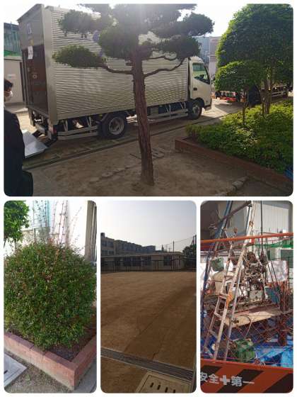 明日から3年生の修学旅行ですが、今回は荷物を別に運ぶので、すでにトラックが待機しています。