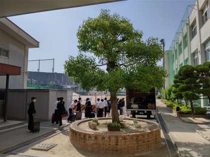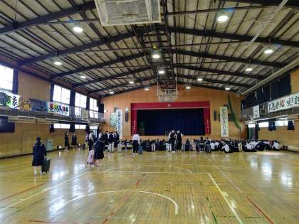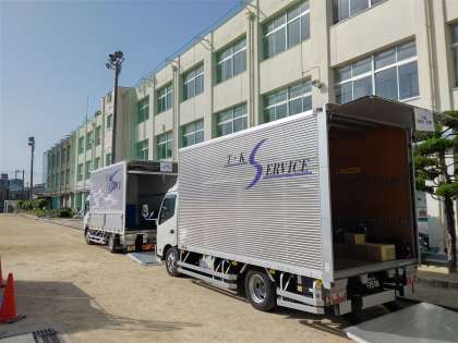 朝の学年集会の時に、明日からの修学旅行の荷物を、先にトラックに積み込みました。