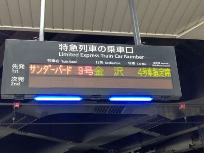 8時47分発、サンダーバード9号、金沢行きに乗車します。