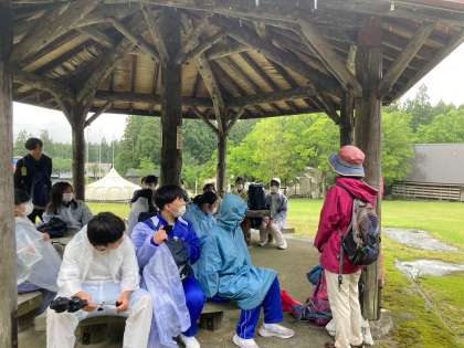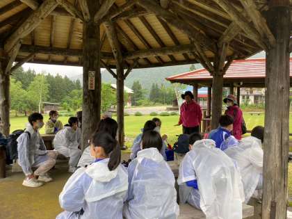 森林セラピーの説明を受けています。