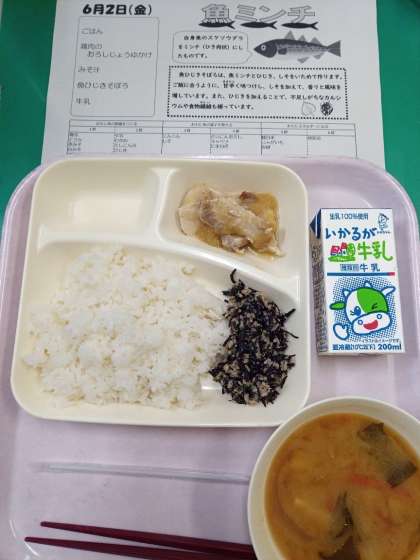 魚ミンチには「イワシのつみれ」等がよく知られますが、今日の給食では「スケトウダラ」が使われているそうです。