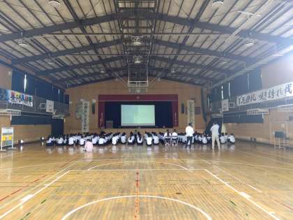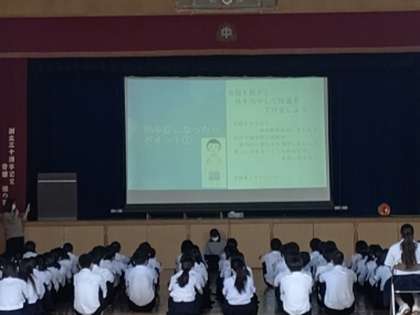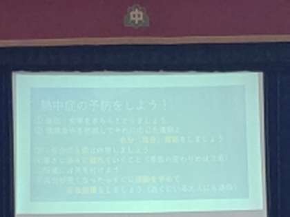 水曜日の朝に3年生の学年集会を行いました。熱中症についてのお話がありました。