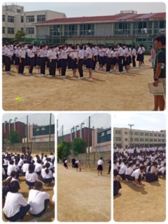 本日6時間目、技術室から火災が発生したという設定で、避難訓練を実施しました。