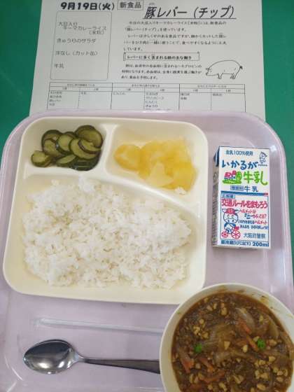 今日の「カレー」には米粉が使用されていますので、小麦アレルギーの人も安心して食べることができます。