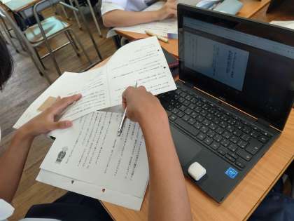 徒然草、平家物語の学習をしています。chromebookの活用をしています。