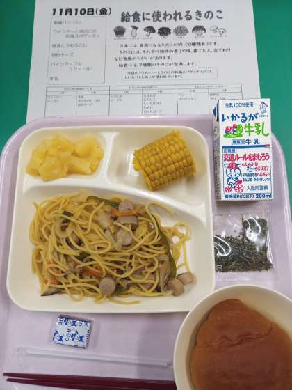 給食に使われるきのこは、その他えのきだけ、エリンギ、なめこ、まいたけ、マッシュルームの7種類だそうです。