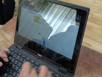 特別支援学級にて、英語科の授業実践を行いました。本時のねらいは、「ヘボン式ローマ字のタイピングで、正確にタイピングを行うことができる。」「英単語覚えカードゲームで、カードゲームを通して英単語を覚えることができる。」の学習です。