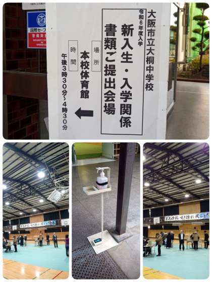 本日15時30分より、本校体育館にて新入生保護者の皆さまに、入学関係書類のご提出にお越しいただきました。