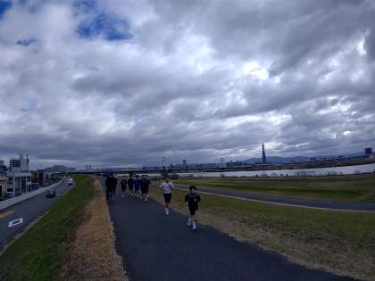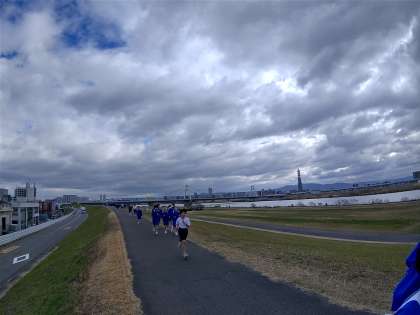 堤防の上の道を走ります。