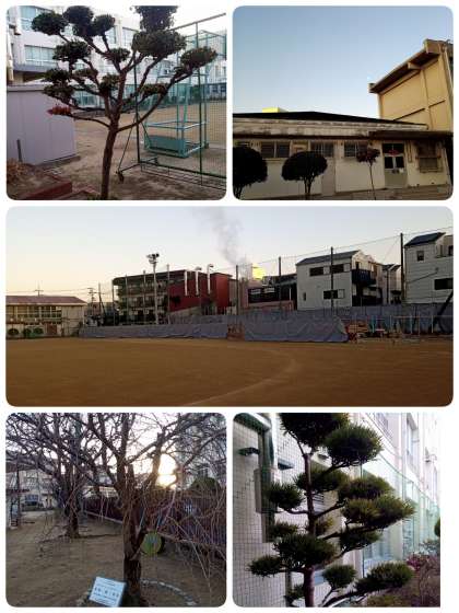北側ブロック塀取替工事の関係で、ガードフェンスが随分手前に移動し、グラウンドが狭くなっています。