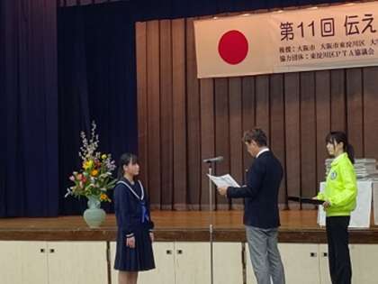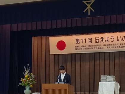 本日の金曜日の午後に、「第11回 伝えよう いのちのつながり表彰式」が、東淀川区民ホールにて開催されました。大桐中学校の1年生が「最優秀賞」を、2年生が「入選」をいただきました。おめでとうございます。