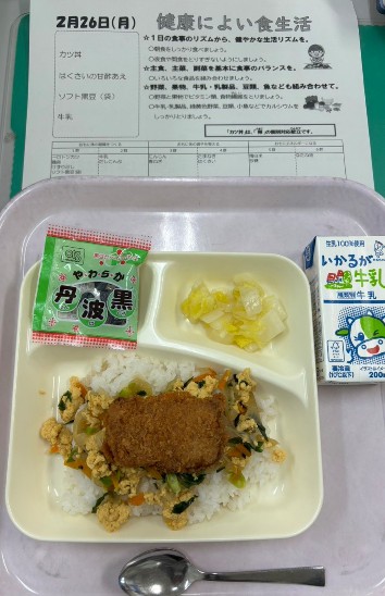 今日の「カツ丼」は、「卵(たまご)」の個別対応献立(こんだて)になります。
