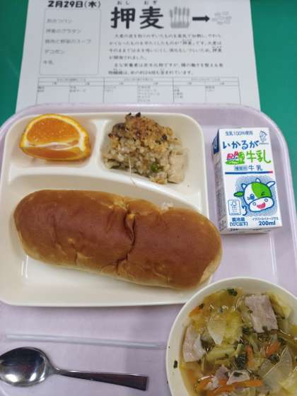 本日の給食メニューは