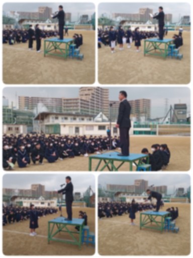 本日、グラウンドにて全校集会を実施いたしました。