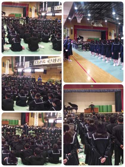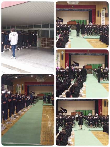 3学年全ては体育館に入れませんので、1年生と2年生、別々に3年生と対面しました。