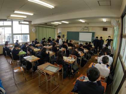 1ー2、2ー2、3ー2の給食の様子です。