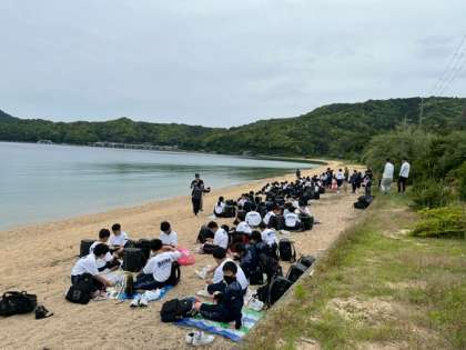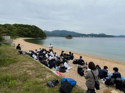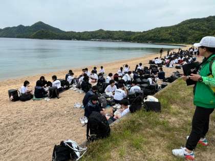 学級写真、学年全体写真を撮影し、お待ちかねの昼食タイムです。