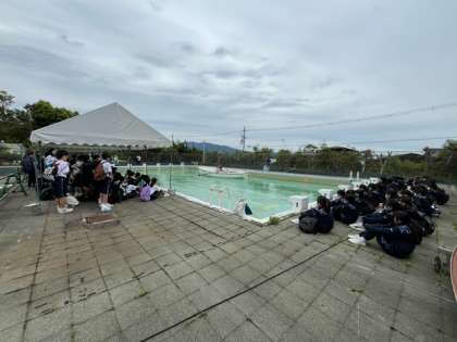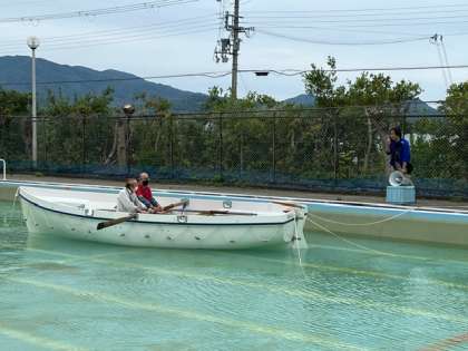 海洋センターの方からカッターの活動について説明がありました。いよいよ、午後の活動がはじまります。