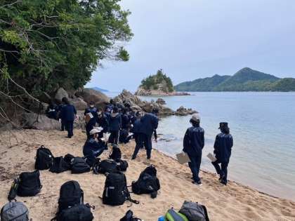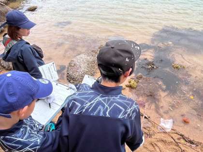 磯観察の活動です。自然とふれあい、楽しそうです。