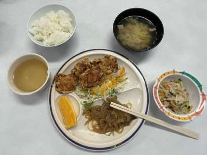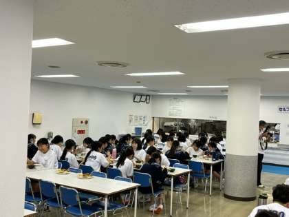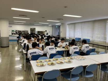 1組〜3組は先に夕食をいただきます。しっかりエネルギー補給をして、次の活動に備えます。