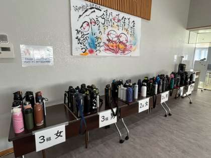 食事係は、早めに集合して、朝食の準備をします。水筒にお茶も補給しています。
