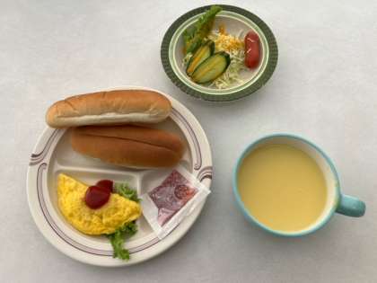 お待ちかねの朝ごはんです。しっかりエネルギー補給して、活動に備えます。