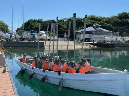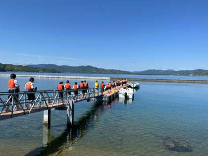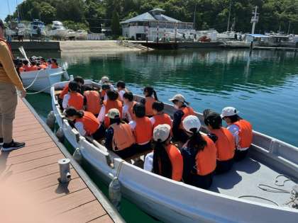 2日目の活動がスタートしました。最高の天気です。カッターに乗り込みました。