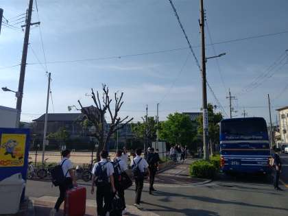 7時11分、バスに荷物を積み込んで、乗車しています。