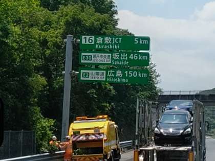 倉敷市に入りました。広島まで150kmです。