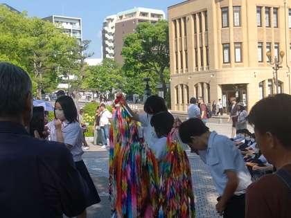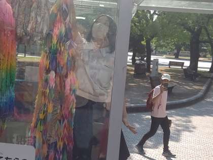 千羽鶴を折り鶴掲載台に掲げました。