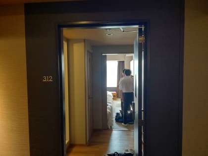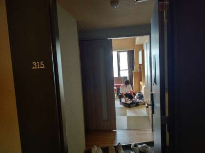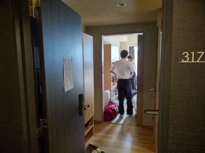 洗面、着替え、荷物整理、部屋の整理整頓をしています。